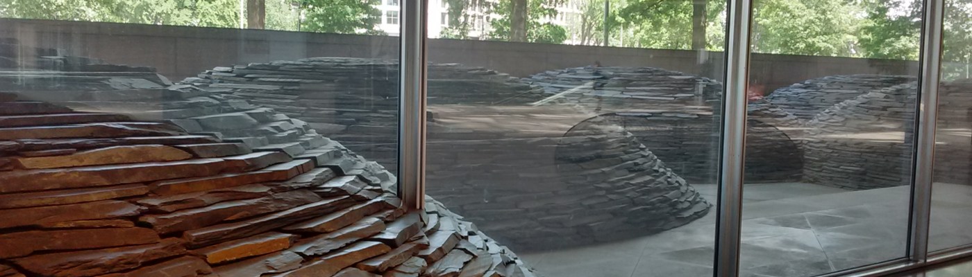 It interesting to look at the way flat sheets of stones (perhaps granite) could be arranged to give such a graceful structure. I found this at an Art Museum in Washington DC. Similar structures are on the other side of glass.